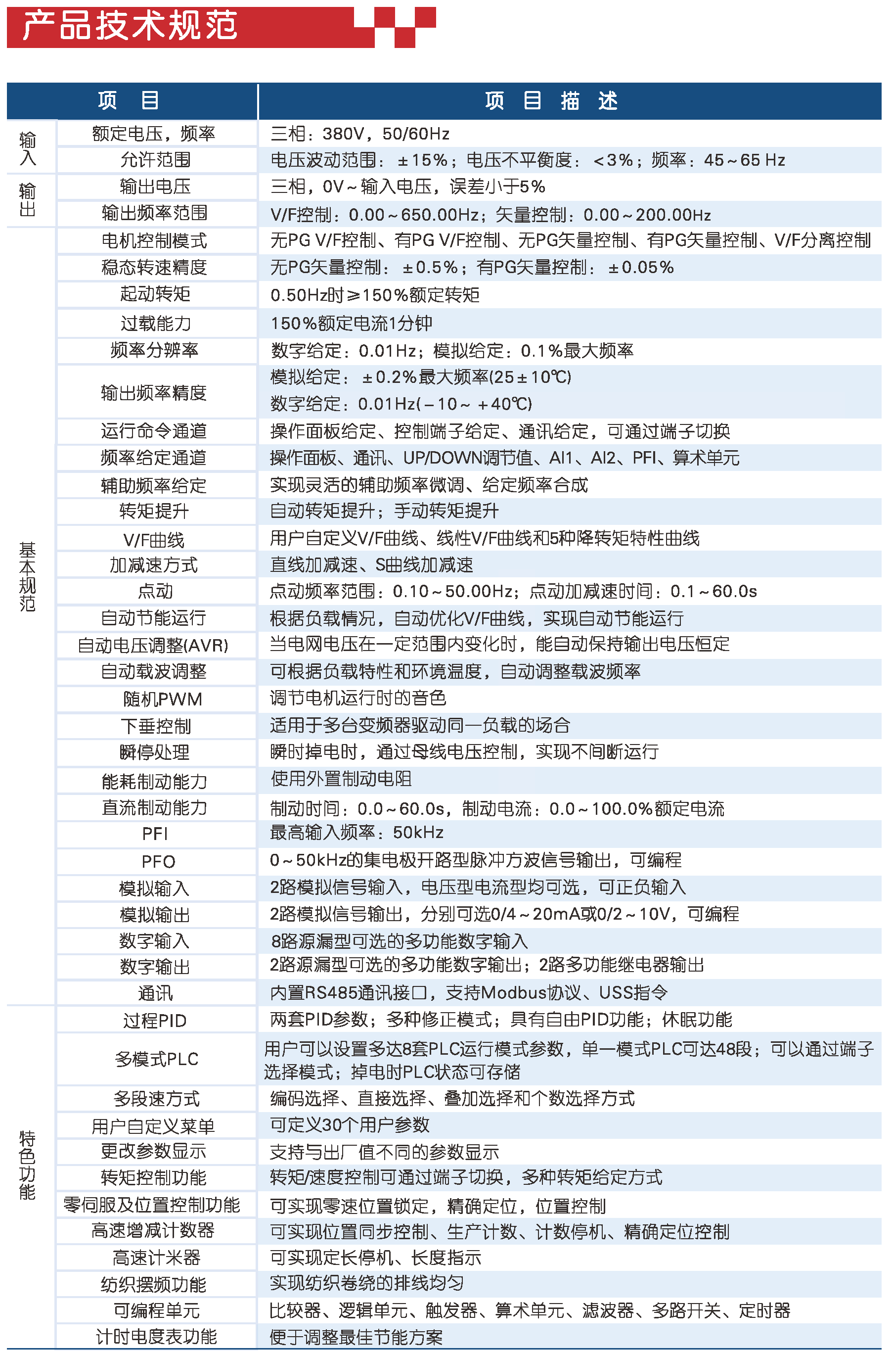 SVD600系列高性能矢量變頻器采用美國(guó)TI公司32位浮點(diǎn)DSP,采用SVPWM空間電壓矢量算法,能夠提升對(duì)直流母線的利用率。SVD600系列高性能矢量變頻器具有多種控制模式,包括壓頻比控制、有速度傳感器矢量控制、無速度傳感器矢量控制等,能夠滿足各種應(yīng)用場(chǎng)景高精度控制要求。與其它品牌通用變頻器相比,SVD600系列高性能矢量變頻器具有以下特點(diǎn):